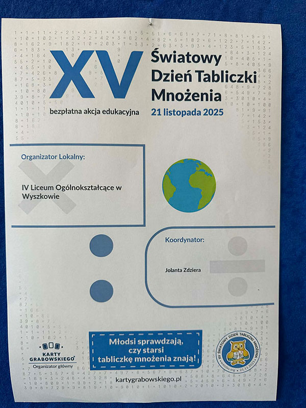 27 listopada 2025 r. uczniowie IV Liceum Ogólnokształcącego w Wyszkowie wzięli udział w finale konkursu „Na Straży Niepodległej”, który odbył się w reprezentacyjnej Sali Kolumnowej Komendy Głównej Straży Granicznej w Warszawie.