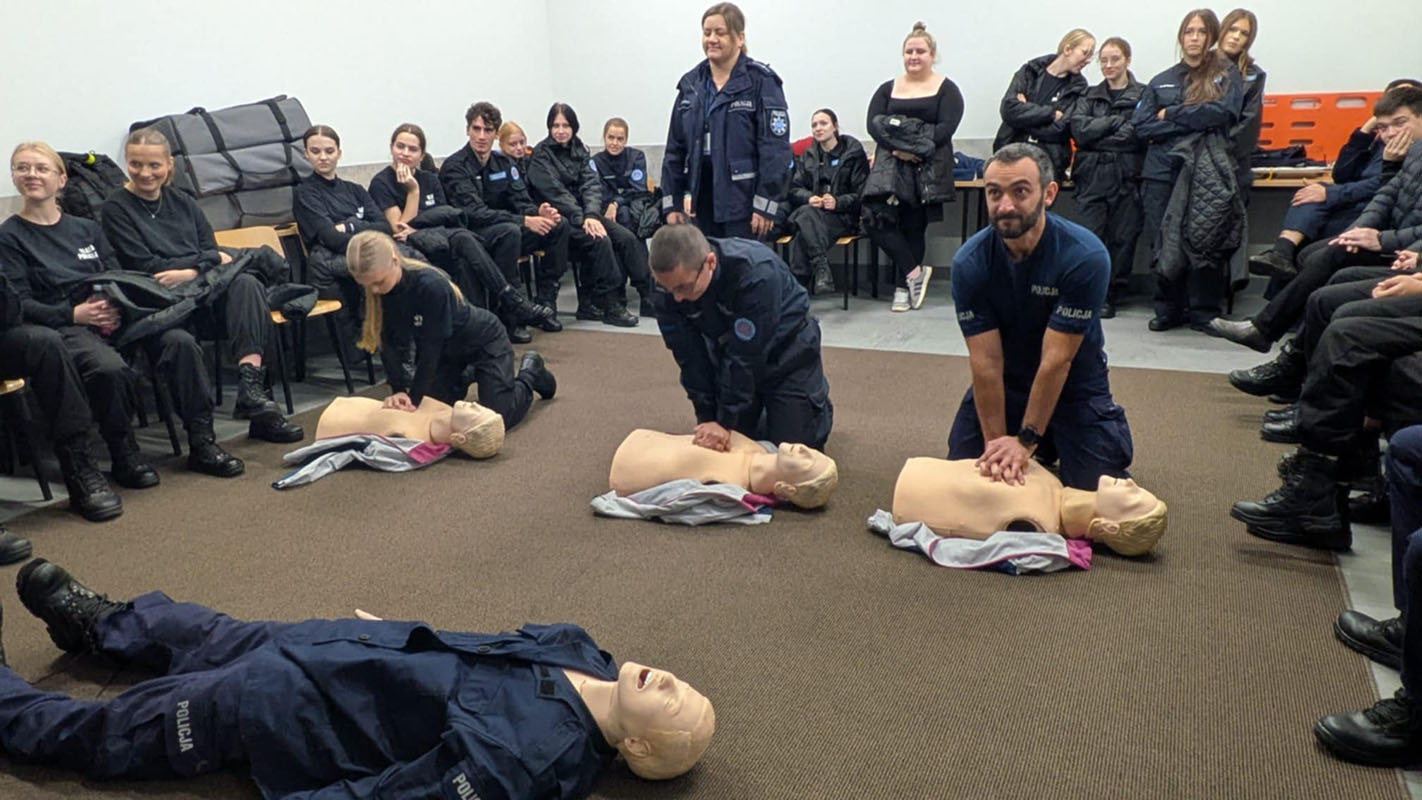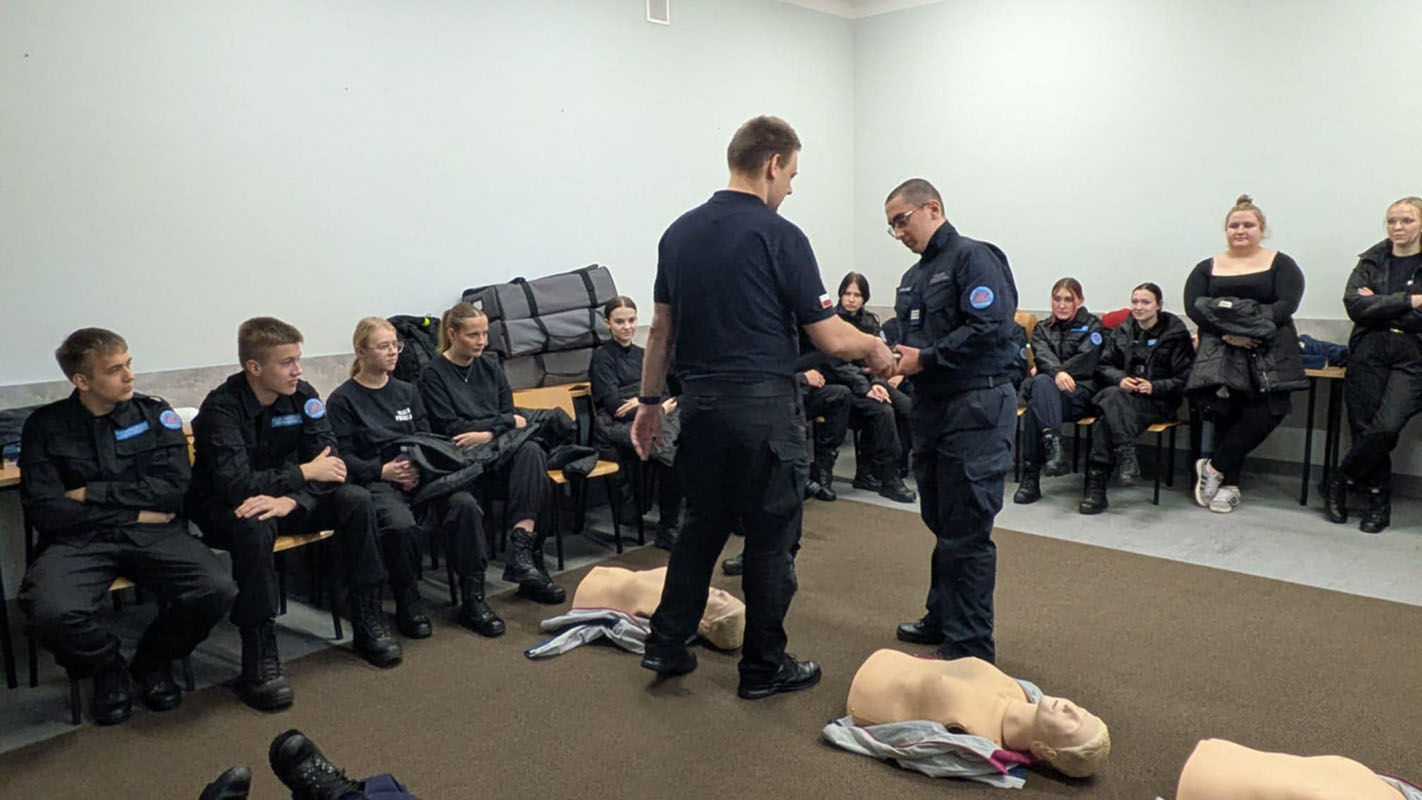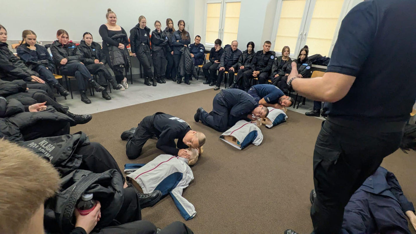 Zakład Szkoleń Specjalnych Uczniowie poznali zasady udzielania pierwszej pomocy, przećwiczyli resuscytację krążeniowo-oddechową oraz obsługę automatycznego defibrylatora AED. Zajęcia miały charakter praktyczny i edukacyjny – podkreślając znaczenie szybkiej reakcji w sytuacjach zagrożenia życia.