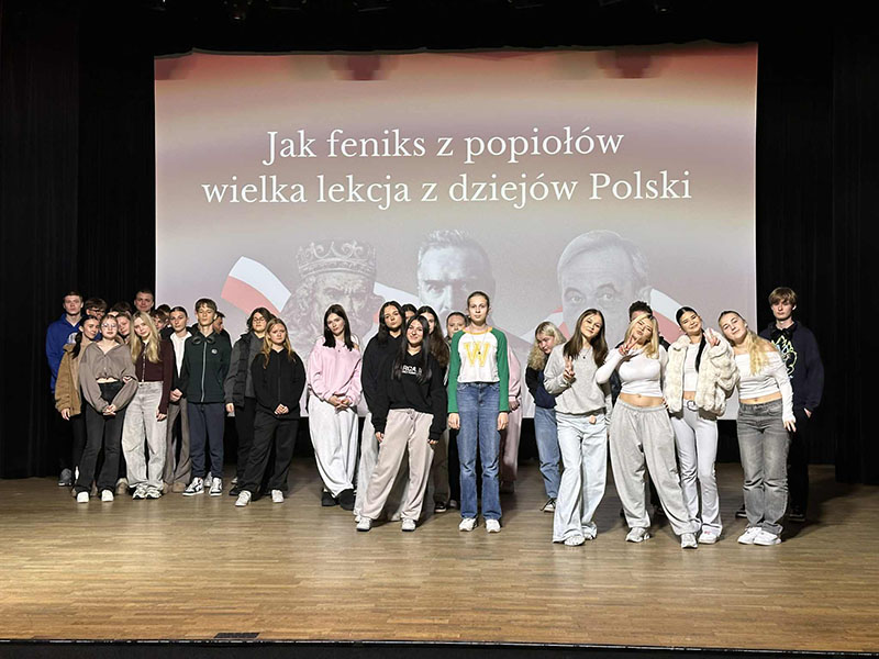 Uczniowie naszych szkół mieli zaszczyt uczestniczyć w wyjątkowym wydarzeniu – „Wielkiej lekcji z dziejów Polski” , która odbyła się w Wyszkowskim Ośrodku Kultury Hutnik. Spotkanie, zatytułowane „Jak feniks z popiołów” , stało się niezwykłą podróżą przez najważniejsze momenty historii naszej Ojczyzny.