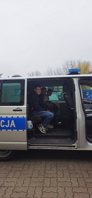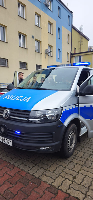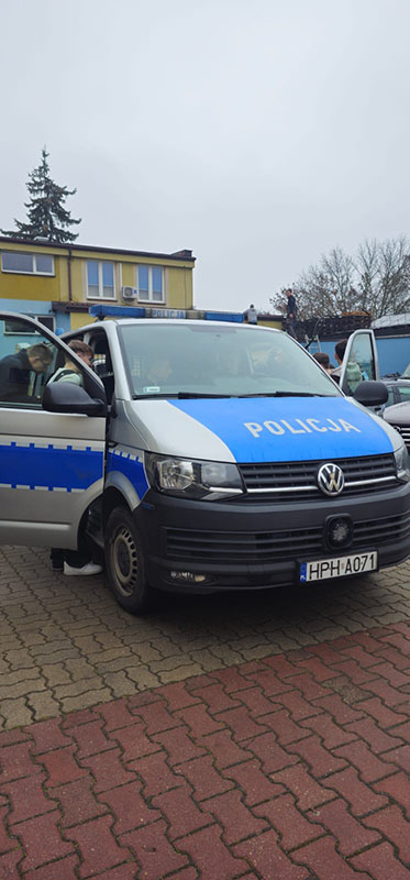 🚓 Samochody policyjne od środka Na zakończenie wizyty uczniowie mieli okazję obejrzeć radiowozy policyjne i wejść do środka. Dzięki temu mogli poczuć atmosferę codziennej służby, zobaczyć wyposażenie pojazdów oraz dowiedzieć się, jak wspierają one pracę funkcjonariuszy w terenie.