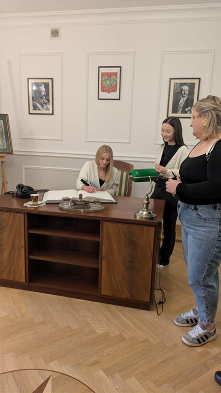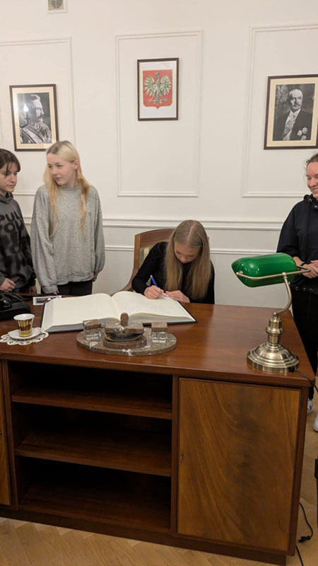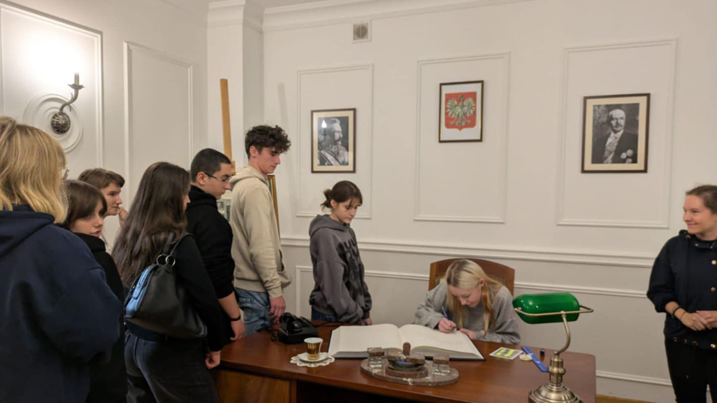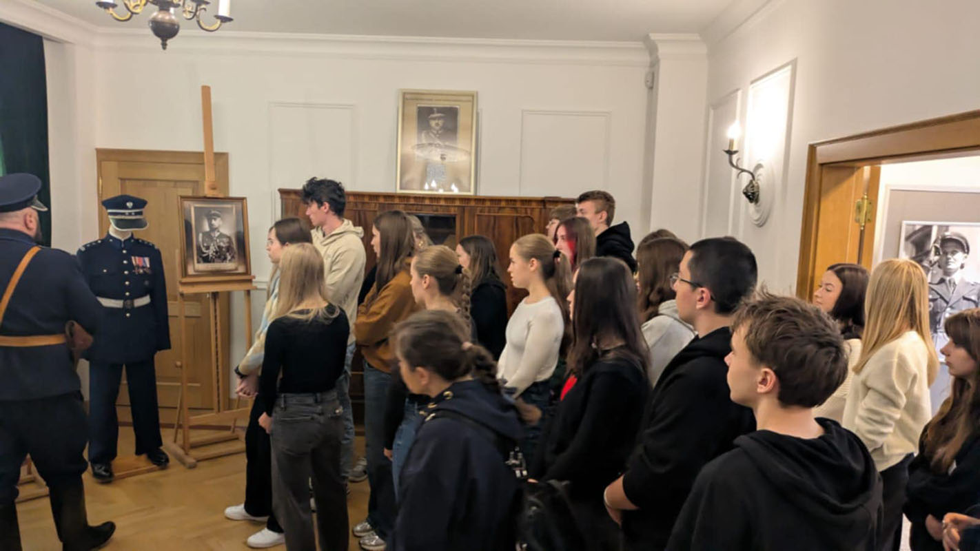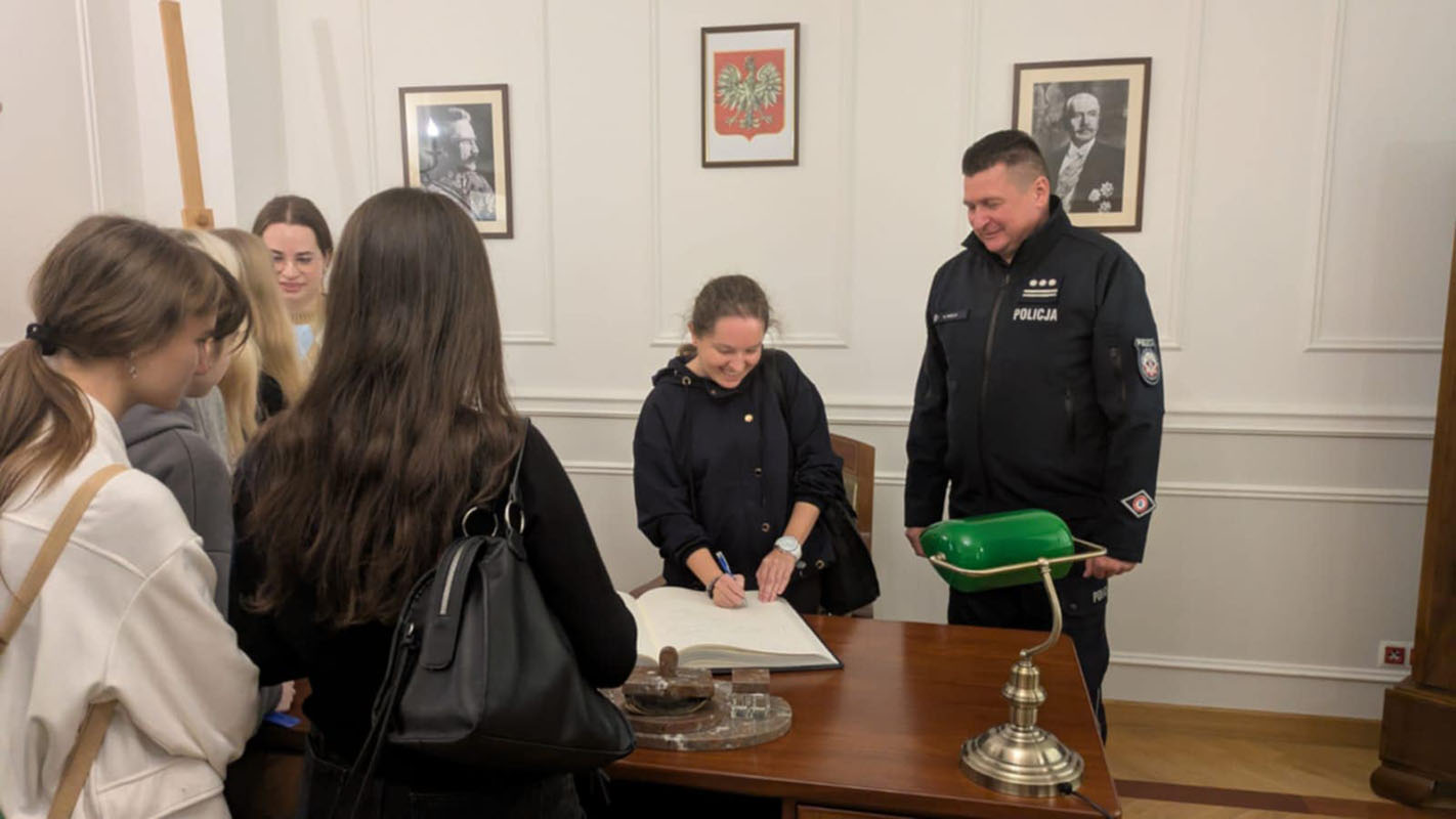 Pierwszym punktem programu była wizyta w Biurze Historii KGP, gdzie młodzież zapoznała się z dziejami polskiej Policji – od jej początków w II Rzeczypospolitej, przez okres II wojny światowej, aż po czasy współczesne. Uczniowie mieli okazję zobaczyć unikatowe eksponaty, archiwalne dokumenty oraz mundury i wyposażenie funkcjonariuszy z różnych epok. Spotkanie było również okazją do rozmowy z przedstawicielami Policji, którzy przybliżyli młodzieży etos służby oraz znaczenie tradycji i pamięci w formowaniu tożsamości zawodowej policjanta.